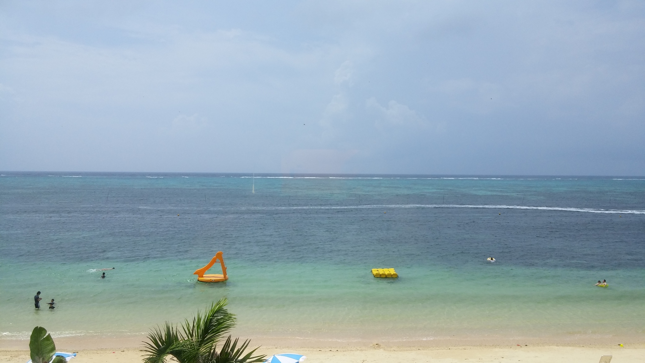 そういう環境でしたが、遊泳開始時刻の朝9時から結構な数のお客さんが海に入っています。子供たちも薄曇りの中、心置きなく遊んでいました。
