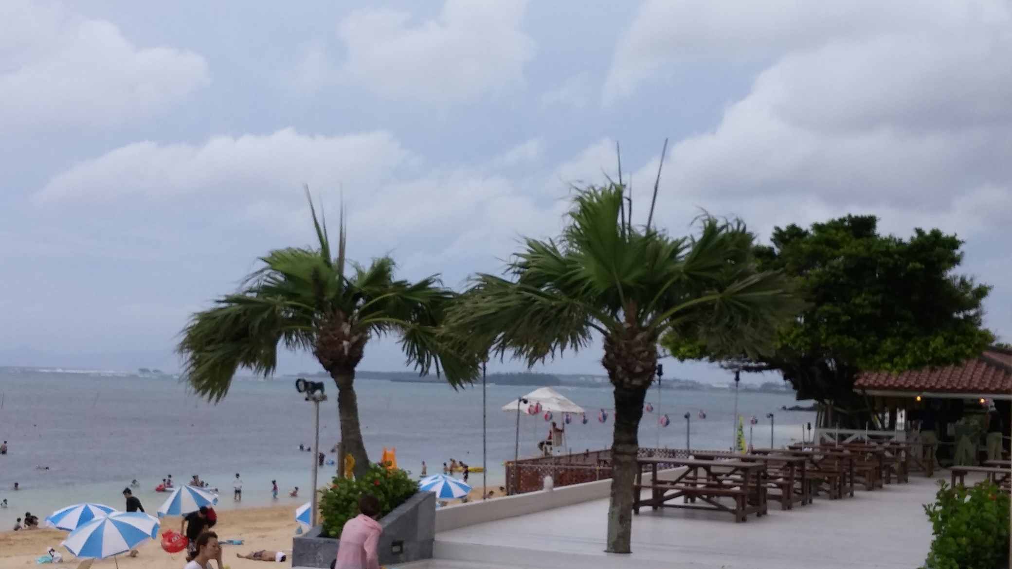 曇り空ということもあり、初日に比べたら暑さもそれほどでもなく、海に入るには十分暑いながらも、比較的過ごしやすい1日になりそうです。強風を除けば・・・ですが。