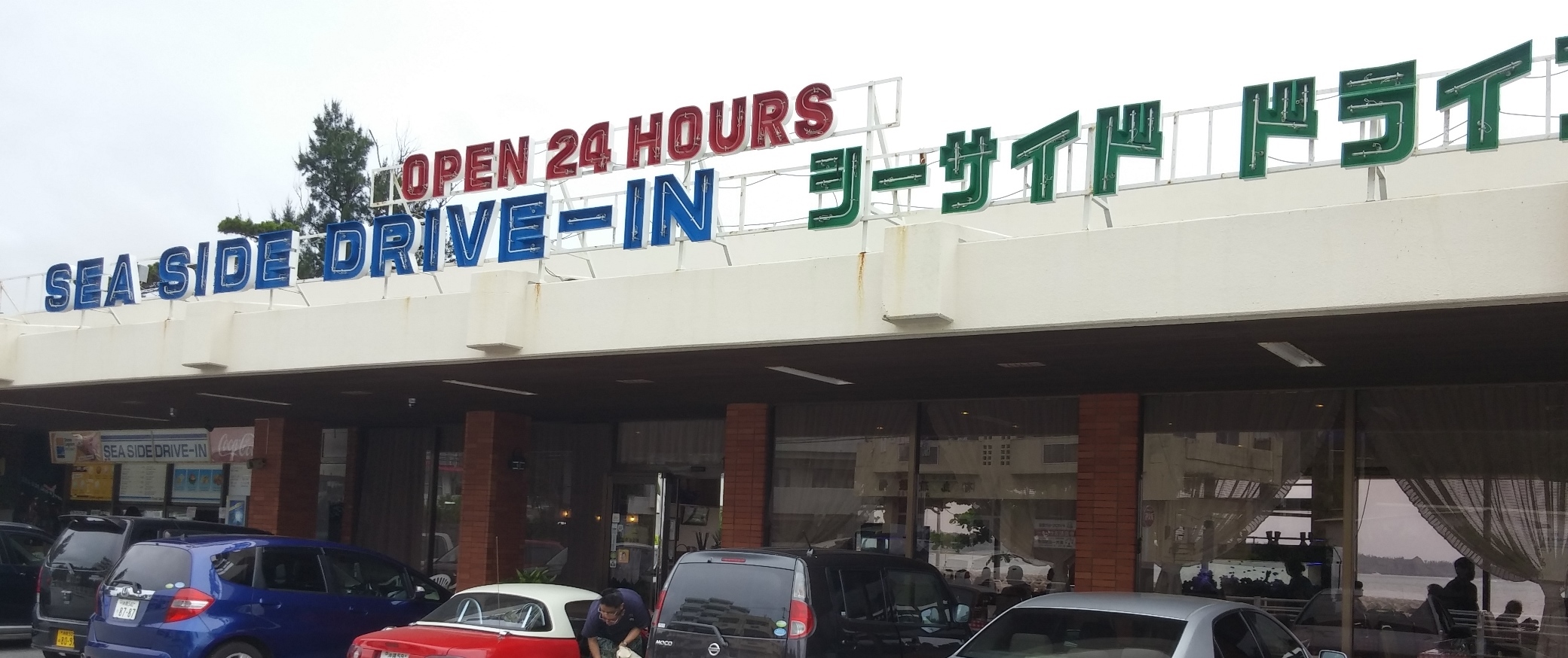 今回2日目の昼食に選んだのは、仲泊にあるこちらのお店。シーサイドドライブイン、とはなかなかにレトロな感じのするネーミングですが、それもそのはず30年間も続く老舗のドライブインだそうです。HPは結構きれいに整備されていますね。