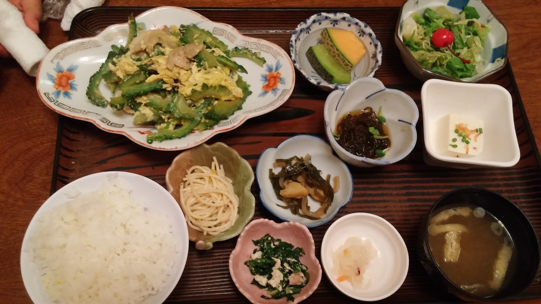 夕食の選択肢はリザンシーパーク谷茶ベイで毎年夏に行われているホテルの屋台村という手もあったんですが、冷房の効いたところで食べたいという希望もありましたので、ホテルそばの居酒屋琉球亭へ。事前に調査したクチコミ的には可もなく不可もなくという感じでしたが、沖縄料理のほか、とんかつとか寿司とかもあり、子供連れには豊富なメニューがうれしいお店です。揚げ物がいま一つなので、お値段が結構高いというのが難点ですが、いろいろ探し回らずすぐ入れるのは嬉しいですね。